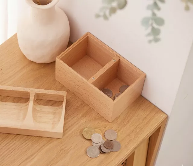 【童心木】超滑順原木零錢盒|存錢筒 / 雙格收納盒 / 桌面小金庫