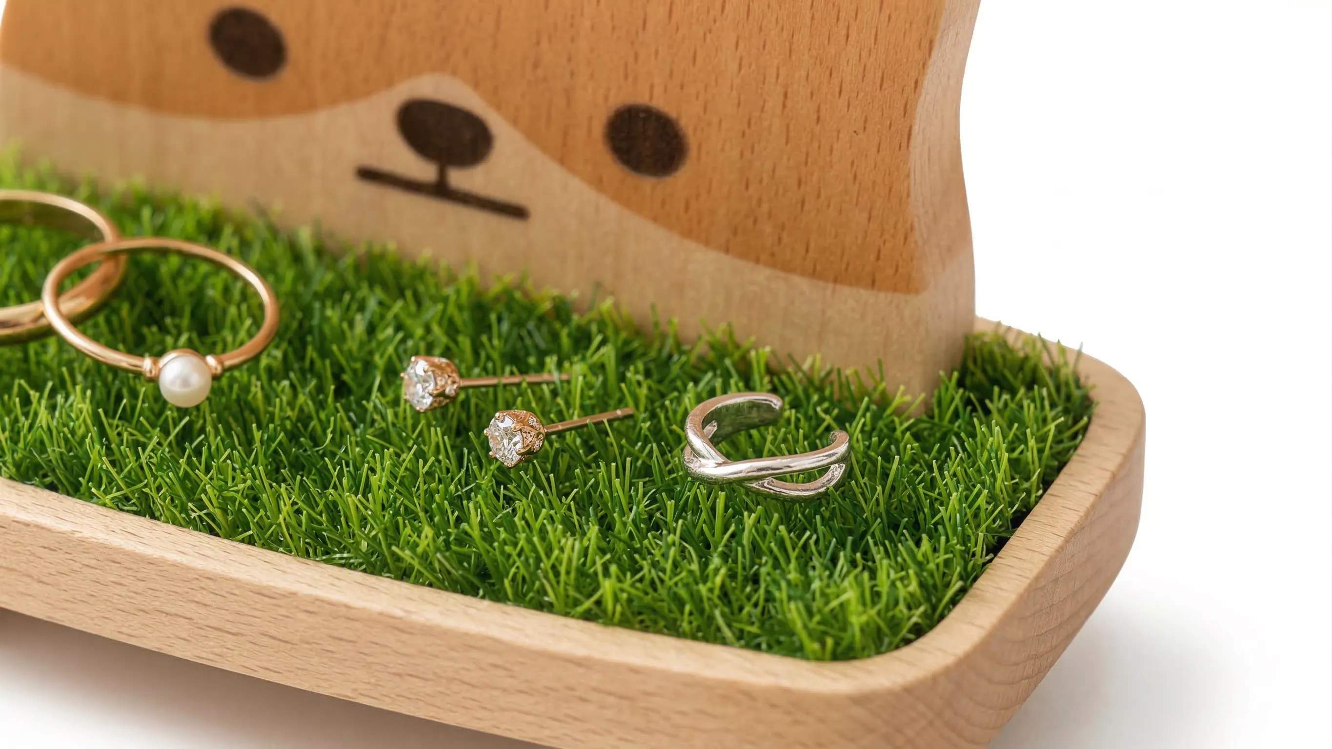 🌿 擬真草皮:收納名片、戒指,增添桌面綠意